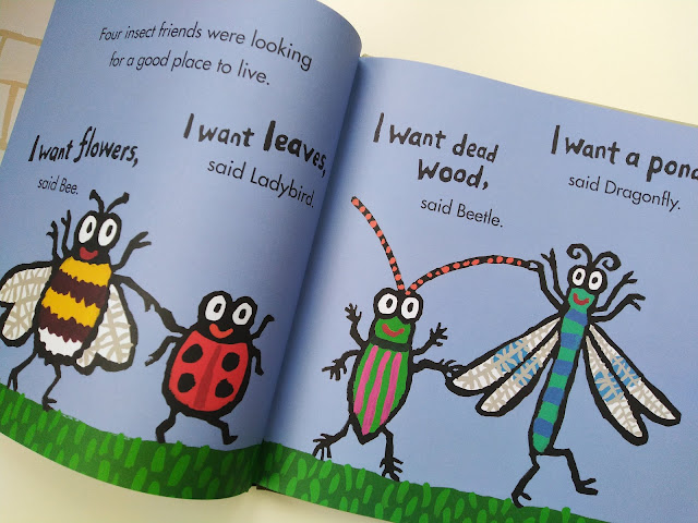 今天要分享的英文繪本是知名繪本創作者 Lucy Cousins 的最新作品,A Good Place。Lucy Cousins 獨特的繪畫風格從封面就讓人一眼認出來,而這本書寫的是四隻昆蟲想找個「好地方」的故事。